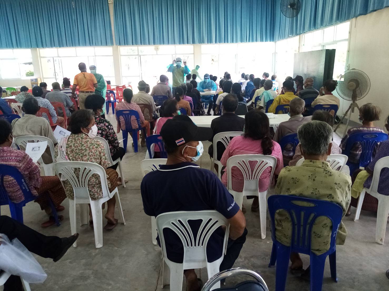 วันพฤหัสบดี, 19 สิงหาคม 2564 15:28ในวันที่ 19 ส.ค 2564 เวลา 13.00 น.ท่านเกริกชัย ผ่องแผ้ว รองผู้ว่าราชการจังหวัดอุบลราชธานี ได้ตรวจเยี่ยมประชาชนในเขตเทศบาลตำบลกุดประทายที่เข้าตรวจคัดกรองโรคติดเชื้อโควิท-19 เริงรุก เพื่อลดการการแออัด รวดเร็ว โดยรับบริการจากศูนย์ป้องกันควบคุมโรคติดต่อ เขต 10 โดยการปฎิบัติงานของทีมรถตรวจคัดกรองโควิด-19 เคลื่อนที่ จาก สคร.(หน่วยพระราชทาน) ซึ่งมีประชาชนเข้ารับการตรวจ 441 ราย ผลเป็นลบทั้งหมด