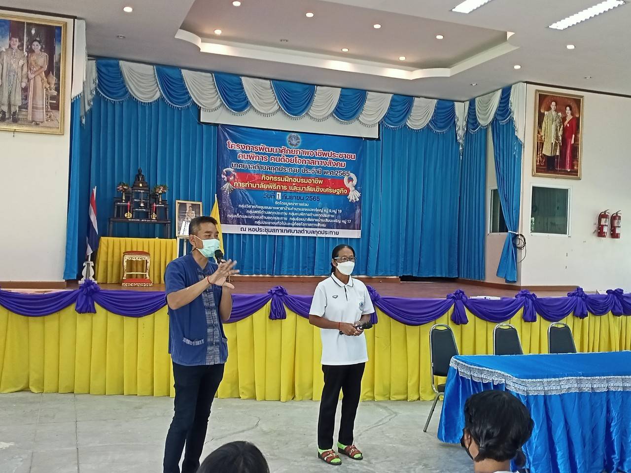 ในวันที่ 1 กันยายน 2565 เทศบาลตำบลกุดประทายจัดโครงการพัฒนาศักยภาพอาชีพประชาชน คนพิการ คนด้อยโอกาสทางสังคม ประจำปี พ.ศ. 2565