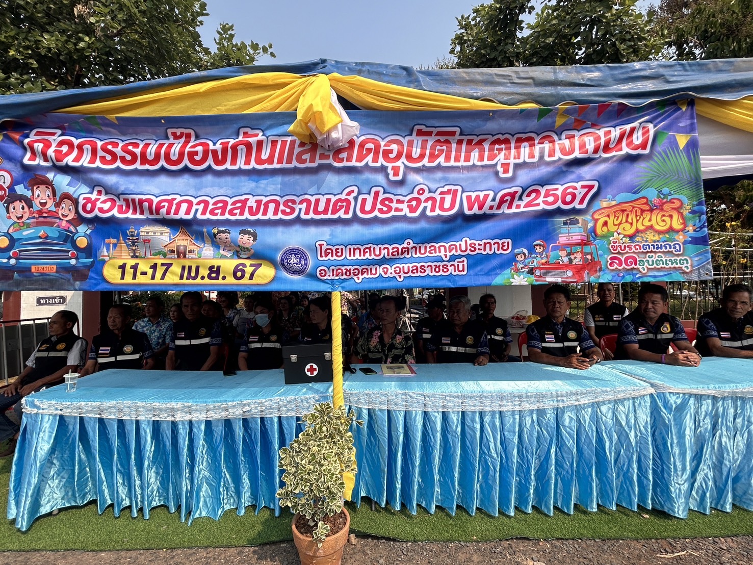 วันที่ 11 เมษายน 2567 เวลา 09.00 น.เป็นต้นไป เทศบาลตำบลกุดประทาย เข้าร่วมพิธีเปิดกิจกรรมป้องกันและลดอุบัติเหตุทางถนนช่วงเทศกาลสงกรานต์ พ.ศ.2567 จุดบริการช่วยเหลือประชาชน หน้าสำนักงานเทศบาลตำบลกุดประทาย