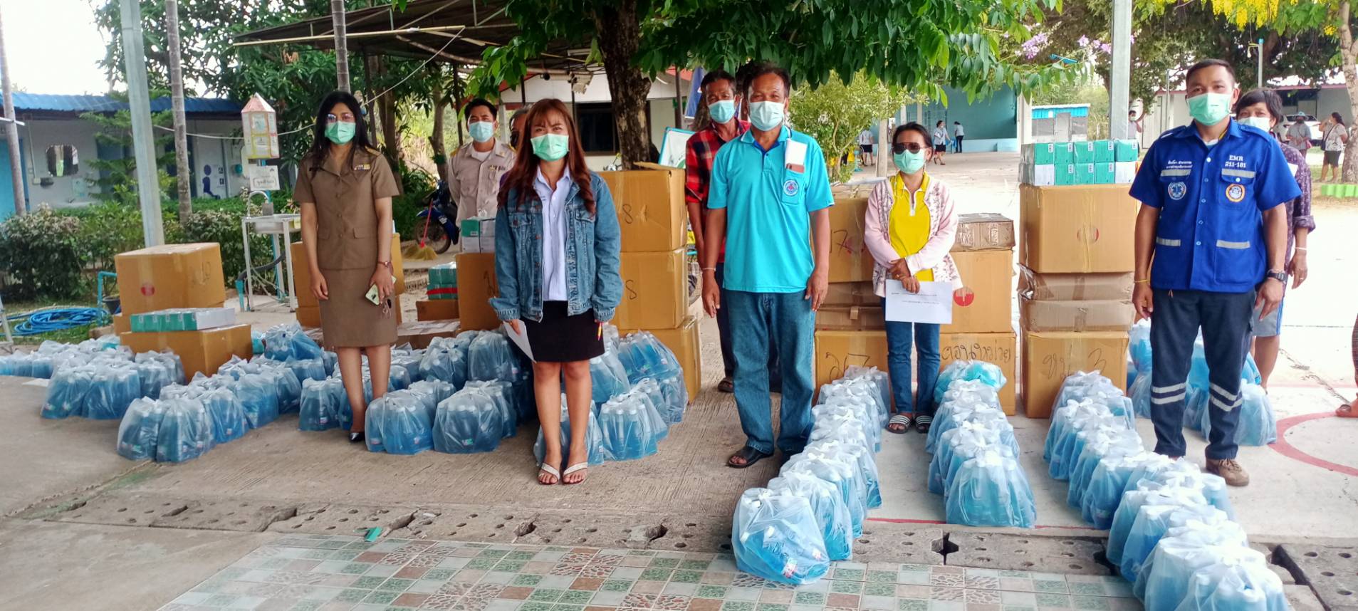 เทศบาลตำบลกุดประทายร่วมใจสู้ภัยไวรัสโควิด-19 โดยการแจกจ่ายหน้ากากอนามัย และเจลแอลกอฮอล์