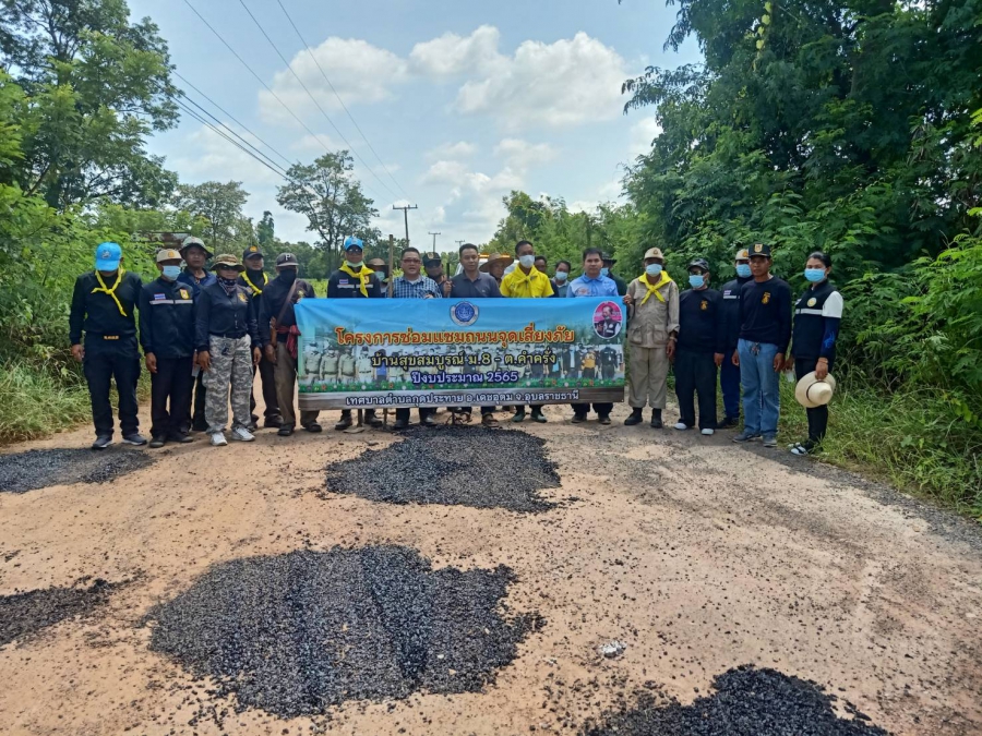 วันที่ 29 มิถุนายน 2565 โครงการซ่อมแซมถนนจุดเสี่ยงภัย บ้านสุขสมบูรณ์ หมู่ 8 - ตำบลครั่ง