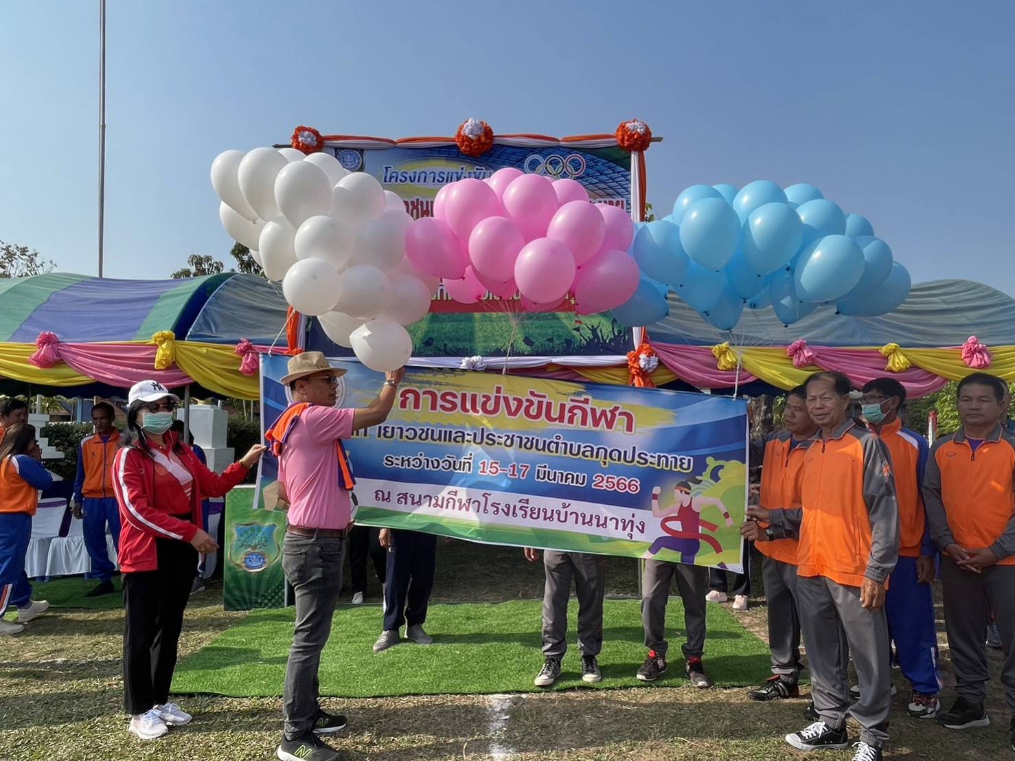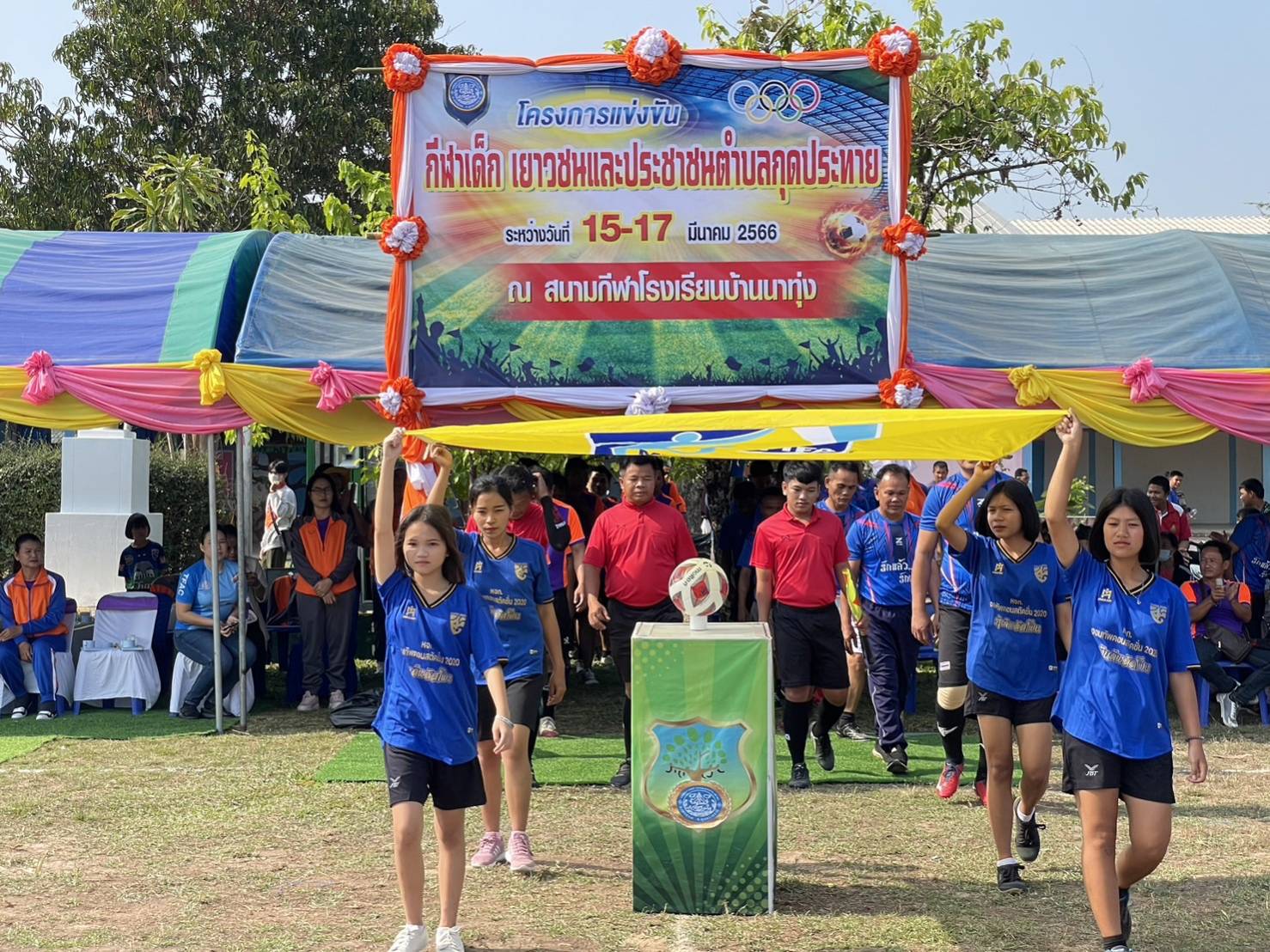 วันพุธ, 15 มีนาคม 2566 09:40ในวันที่ 15 มีนาคม 2566 นายกองโทเสนีย์ มะโน นายอำเภอเดชอุดม เป็นประธานในพิธีเปิดโครงการแข่งขันกีฬาเด็ก เยาวชนและประชาชนตำบลกุดประทาย ณ สนามกีฬาโรงเรียนบ้านนาทุ่ง ตำบลกุดประทาย อำเภอเดชอุดม จังหวัดอุบลราชธานี
