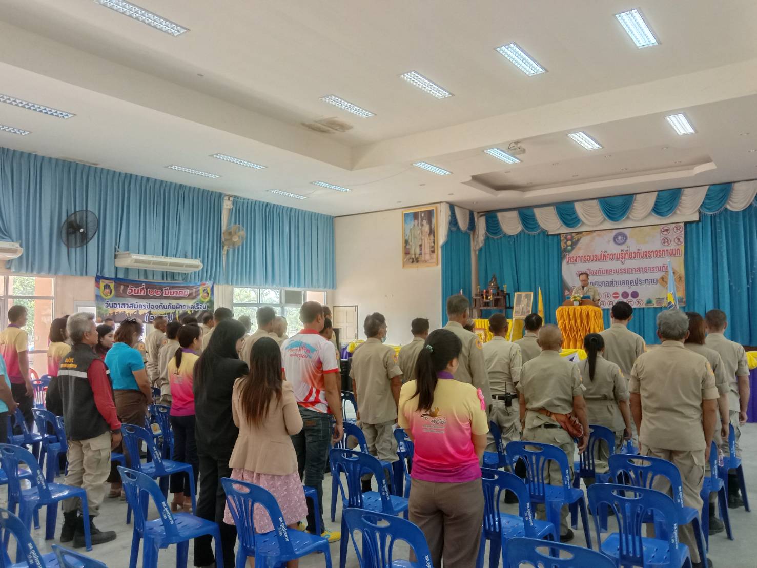 วันศุกร์, 22 มีนาคม 2567 13:57วันที่ 22 มีนาคม 2567 เวลา 09.00 น.เป็นต้นไป เทศบาลตำบลกุดประทาย โดย นายวิทยา สำเภา นายกเทศมนตรีตำบลกุดประทาย คณะผู้บริหาร สมาชิกสภาเทศบาล ปลัดเทศบาล หัวหน้าสำนักปลัดเทศบาล ผู้อำนวยการกองคลัง ผู้อำนวยการกองช่าง ผู้อำนวยการกองการศึกษา หัวหน้าฝ่ายปกครอง หัวหน้าฝ่ายการเจ้าหน้าที่ พนักงานเทศบาล และ พนักงานจ้าง เข้าร่วมพิธีเปิดโครงการอบรมให้ความรู้เกี่ยวกับจราจรทางบกเเละจัดกิจกรรมวันอาสาสมัครป้องกันภัยฝ่ายพลเรือน (อปพร.) ณ หอประชุมเทศบาลตำบลกุดประทาย