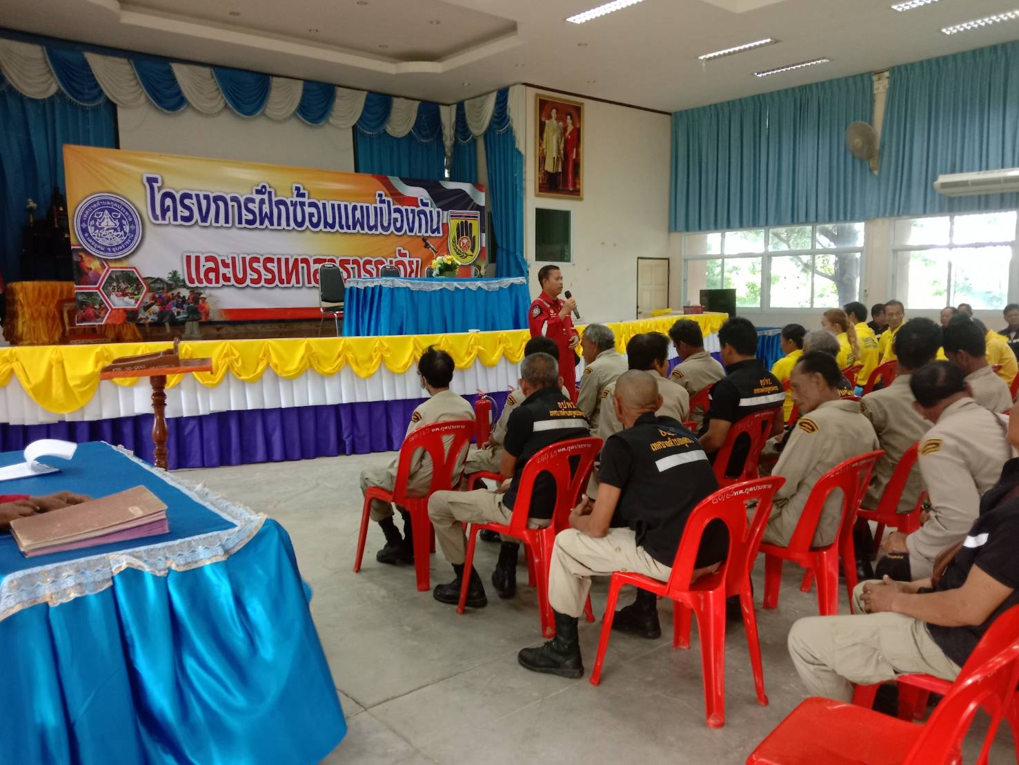 วันพฤหัสบดี, 29 สิงหาคม 2567 15:15โโดย นายวิทยา สำเภา นายกเทศมนตรีตำบลกุดประทาย พร้อมคณะผู้บริหาร/สมาชิกสภาฯ/ปลัดเทศบาล/ผู้อำนวยการกองคลัง/หัวหน้าสำนักปลัด/หัวหน้าฝ่ายปกครอง/พนักงานเทศบาล/พนักงานจ้าง เข้าร่วมเป็นเกียรติในพิธีเปิดโครงการฝึกซ้อมเเผนป้องกันเเละบรรเทาสาธารณภัย (ซ้อมเเผนป้องกันเเละระงับอัคคีภัยในเขตเทศบาล) เพื่อเป็นการเตรียมความพร้อมในการป้องกันเเละลดความเสี่ยงจากอัคคีภัย ณ หอประชุมเทศบาลตำบลกุดประทาย
