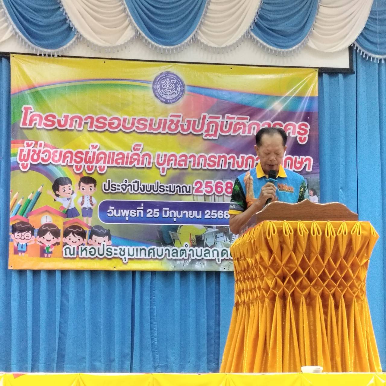 วันที่ 25 มิถุนายน 2568 #เทศบาลตำบลกุดประทาย จัดโครงการอบรมเชิงปฎิบัติการครู ผู้ช่วยครูผู้ดูแลเด็ก บุคลากรทางการศึกษา ประจำปีงบประมาณ พ.ศ.2568 ณ หอประชุมเทศบาลตำบลกุดประทาย