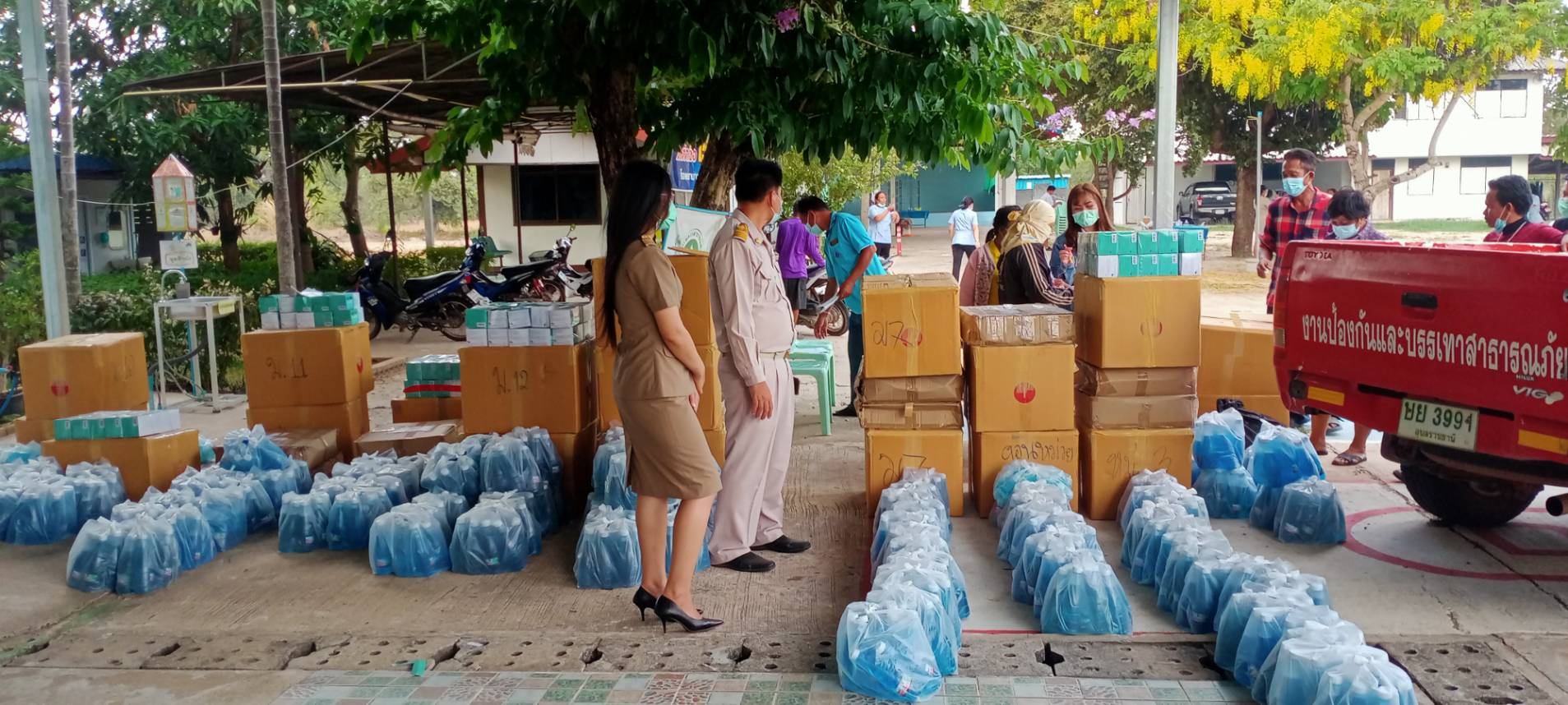 เทศบาลตำบลกุดประทายร่วมใจสู้ภัยไวรัสโควิด-19 โดยการแจกจ่ายหน้ากากอนามัย และเจลแอลกอฮอล์