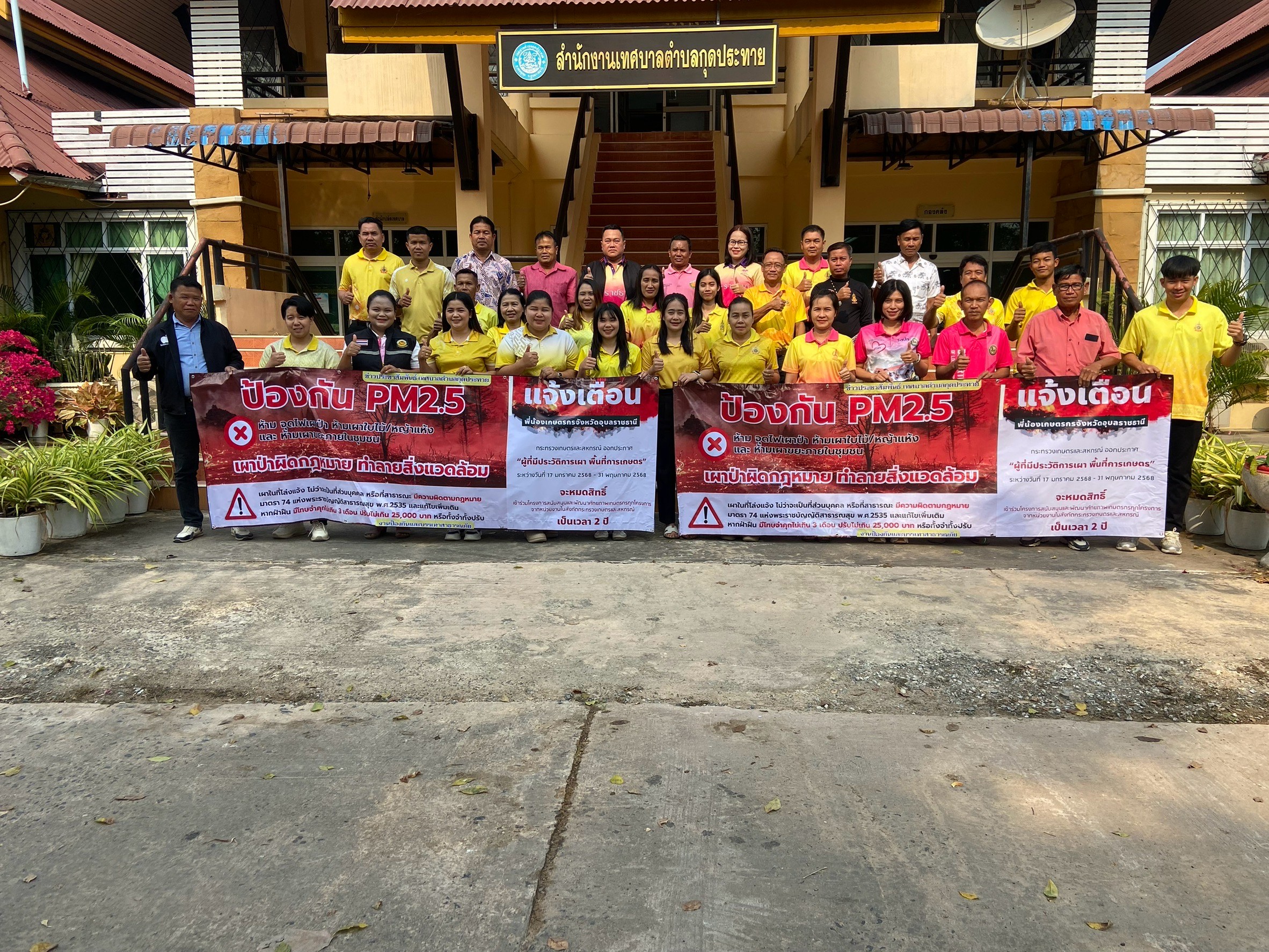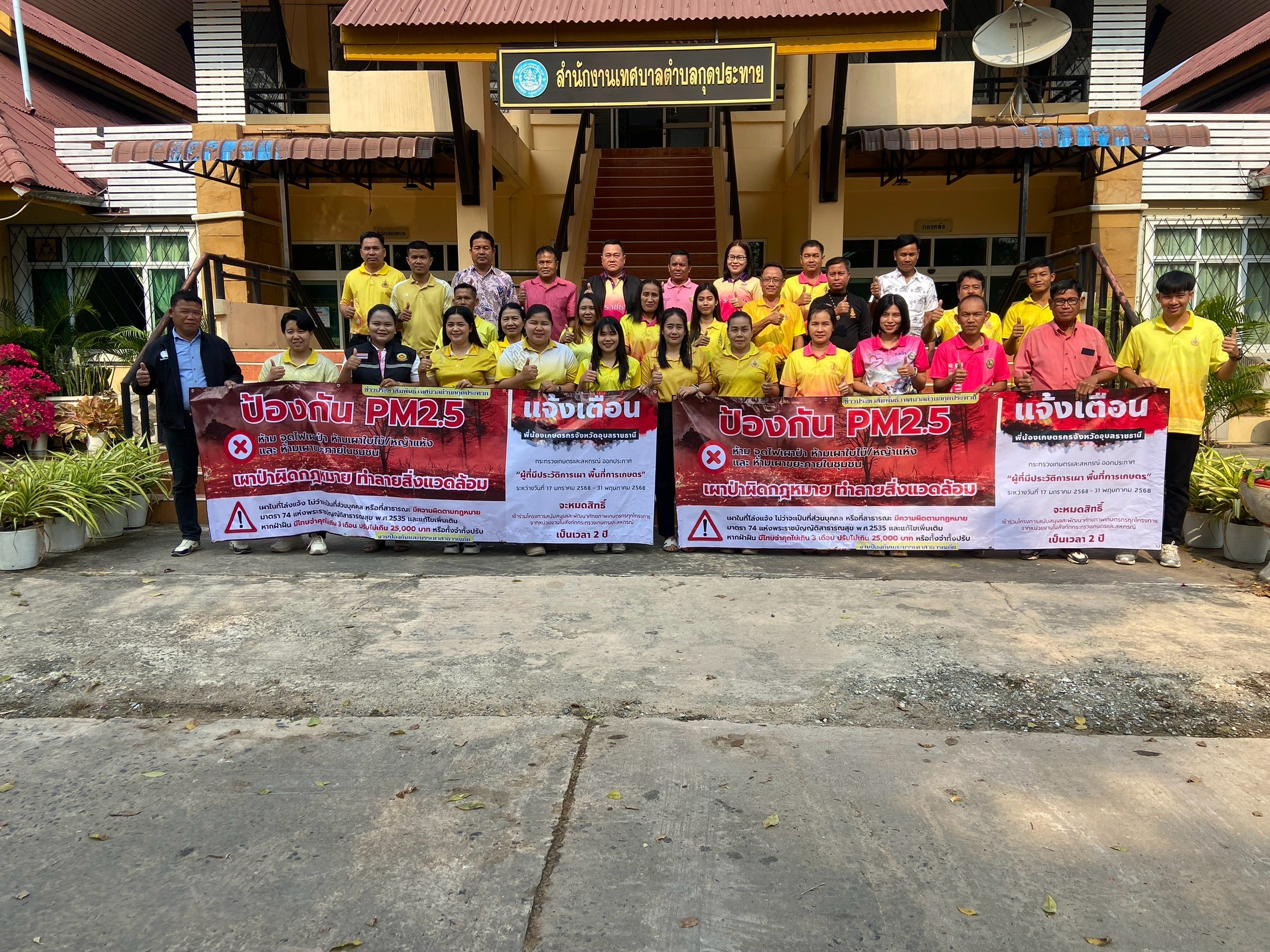 ข่าวประชาสัมพันธ์ เทศบาลตำบลกุดประทาย ป้องกัน PM2.5 ห้ามจุดไฟเผาป่า ห้ามเผาใบไม้/หญ้าแห้ง และห้ามเผาขยะภายในชุมชน